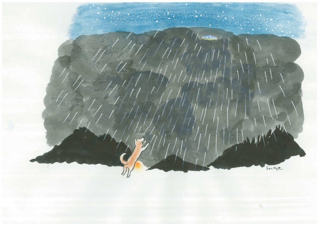 わたしは降りしきる雨の中、星空に向かって必死に駆け上がりました。