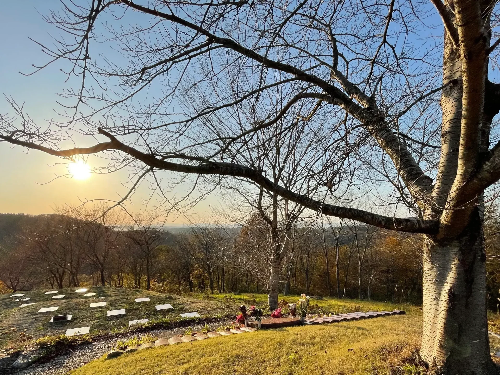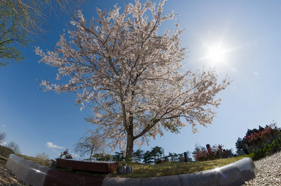 - 東北最大の桜に見守られ花になります。奥羽の残雪に夕日が眺望できる絶景地、周囲には季節の花が咲きます。